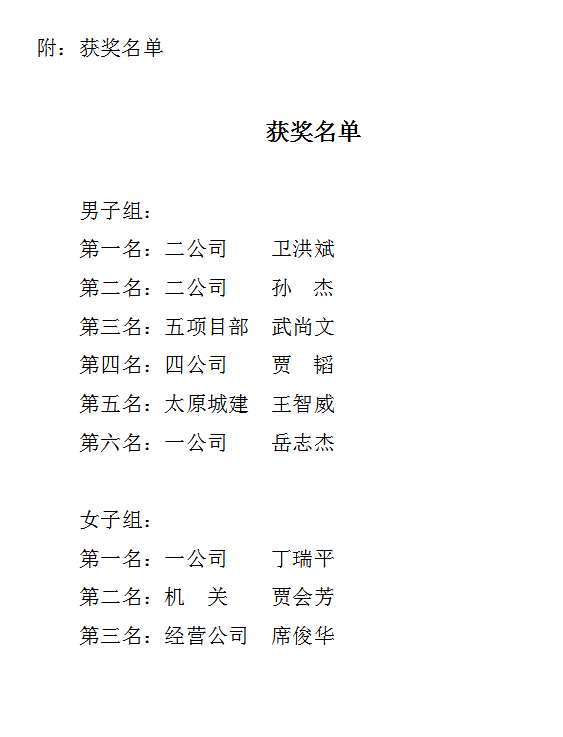 此次比賽分為男子組、女子組進(jìn)行,來自各基層單位、項(xiàng)目部及民建隊(duì)的近三十余名選手參賽。經(jīng)過一天的激烈角逐,分別決出了男子前六名和女子前三名,并現(xiàn)場頒發(fā)了獎狀和獎品。黨委委員、監(jiān)事會主席、工會主席馮忠對獲獎選手表示祝賀,并希望大家積極參加市總工會組織的活動,將運(yùn)動場上的拼搏精神發(fā)揚(yáng)到干事創(chuàng)業(yè)中,為推動企業(yè)高質(zhì)量發(fā)展注入新的生機(jī)和活力。