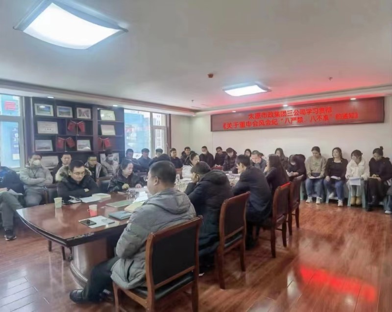 太原市政集團(tuán)組織黨員干部學(xué)習(xí)《省紀(jì)委關(guān)于重申會(huì)風(fēng)會(huì)紀(jì)“八嚴(yán)禁、八不準(zhǔn)”的通知》文件精神