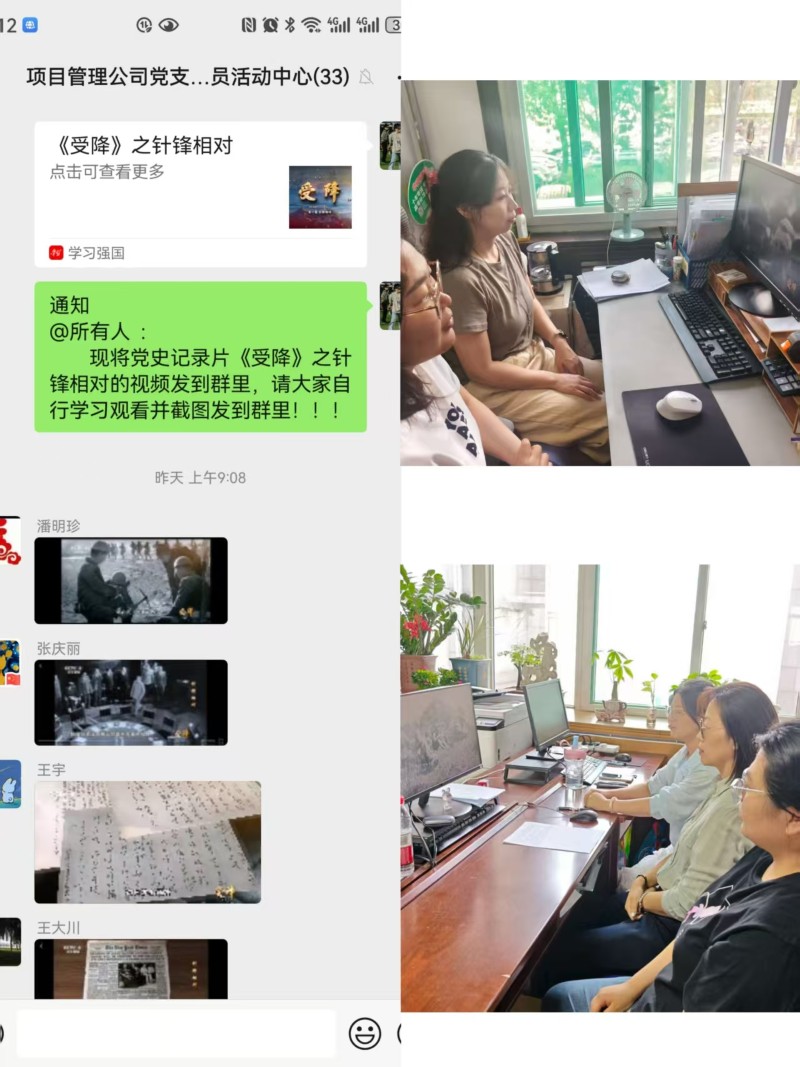 9月1日,項(xiàng)目管理公司黨支部開展“重溫歷史 奮勇爭先”主題活動(dòng)。活動(dòng)中,全體黨員干部共同觀看黨史紀(jì)錄片《受降》,紀(jì)錄片以詳實(shí)的史料、珍貴的影像生動(dòng)展現(xiàn)中國共產(chǎn)黨始終以人民利益為根本,在復(fù)雜形勢下堅(jiān)守信仰、運(yùn)籌帷幄的政治智慧和使命擔(dān)當(dāng),引導(dǎo)黨員干部不斷加強(qiáng)黨史學(xué)習(xí),切實(shí)把優(yōu)秀歷史經(jīng)驗(yàn)轉(zhuǎn)化為推動(dòng)工作的實(shí)際行動(dòng)。