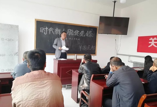 同時,集團公司的另一支扶貧工作隊來到對口幫扶村——廟灣鄉(xiāng)羊圈莊村進行入戶走訪慰問,認真了解了近期貧困戶政策落實、家庭收入及生活困難等情況,并送上了慰問品。集團公司駐村扶貧第一書記羅亮洲組織貧困戶在村委會的脫貧學堂開展了以“時代新人、脫貧先鋒”為主題的宣講活動,為大家講述了身殘志堅的貧困戶——韓買林的脫貧先進事跡,鼓勵貧困戶要自主脫貧,早日走在致富的大道上。