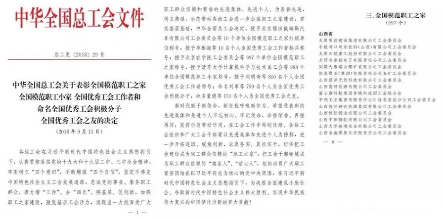 近日,太原市政建設(shè)集團(tuán)有限公司工會(huì)榮獲“全國模范職工之家”光榮稱號(hào)。這是中華全國總工會(huì)給予基層工會(huì)的最高榮譽(yù),也是對(duì)集團(tuán)公司工會(huì)近幾年各項(xiàng)工作的充分肯定。