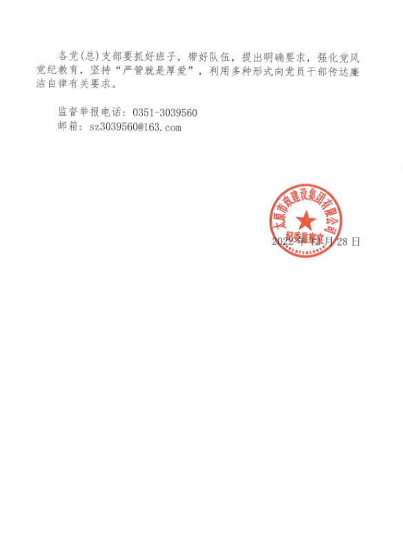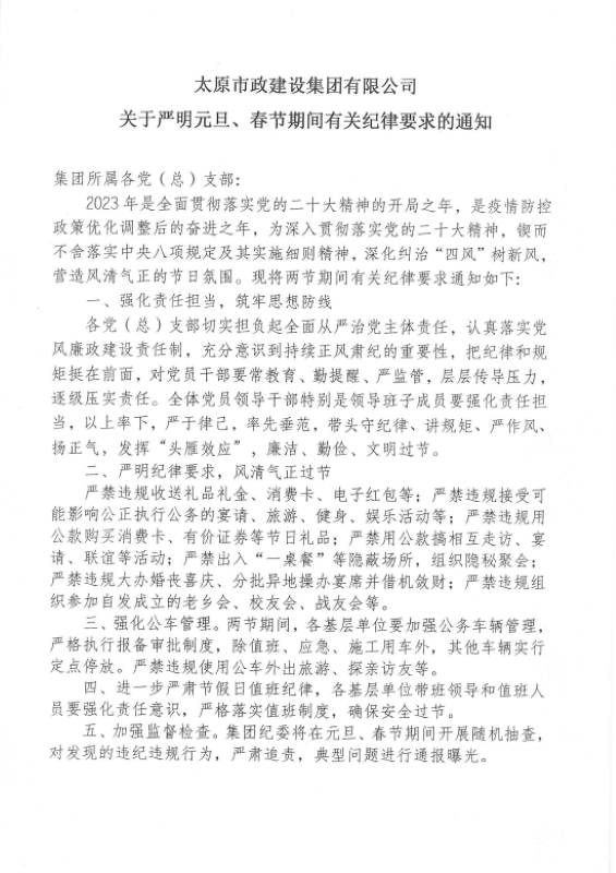 太原市政建設集團有限公司關于嚴明元旦、春節(jié)期間有關紀律要求的通知