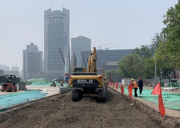 5月12日,在二公司承建的五一廣場改造工程市政道路及管網(wǎng)工程施工現(xiàn)場,9臺挖掘機(jī)、3臺裝載機(jī)、3臺壓路機(jī)“同步作業(yè)”,灑水車、霧炮車、渣土車等車輛“接力行進(jìn)”,雨污水管線施工、混凝土墊層、石材鋪筑等工序“全面開花”,150多名施工人員全部投入施工“攻堅(jiān)戰(zhàn)”。