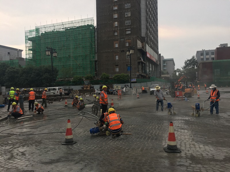 夏日的燥熱抵擋不住全體施工人員的工作熱情,為了全力推進工程建設,項目部合理延長每日施工作業(yè)時間,增加作業(yè)班數(shù),不分晝夜進行施工作業(yè)。為了有效提高施工速度,項目部采用流水作業(yè)的施工方式,多工作面平行作業(yè),提高機械利用率。同時,項目部針對季、月、旬作出詳細計劃,建立起進度協(xié)調(diào)工作制度,每周組織項目部管理人員及各工隊組長召開施工調(diào)度會,重點解決施工中的技術難題,以及計劃執(zhí)行情況和存在的問題,隨時根據(jù)施工情況調(diào)整各施工項目的人力、機械和材料用量,全力以赴推進工程進度。截至7月20日,廣場環(huán)路、迎澤南街路面磚鋪裝已完成100%,廣場西路鋪裝已完成90%,廣場東路完成63%;并州北路及廣場南路完成35%;廣場總鋪裝面積3萬多平米,已完成總鋪裝量的50%。