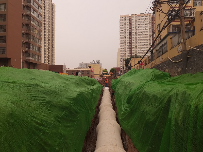 該工程是在利用城市現(xiàn)有排水設(shè)施的同時(shí),兼顧周邊管道需求,進(jìn)行的雨污水分流施工,共包括八條道路,二項(xiàng)目部負(fù)責(zé)城建巷、小溝街、新街南二巷、剪子灣路共四條道路的施工。四條道路均地處老城區(qū),施工路段的地下管線復(fù)雜,各類(lèi)管線密布且使用時(shí)間較長(zhǎng),項(xiàng)目部果斷摒棄機(jī)械開(kāi)挖方法,采取“逐層遞進(jìn)”的施工方式,先利用機(jī)械挖掘路面表層,再采取人工開(kāi)挖探坑方式探查現(xiàn)狀管線,逐步明確地下管線布局,制定專(zhuān)項(xiàng)施工方案,確保地下管線安全。因剪子灣路坡度大、排水困難,項(xiàng)目部在接收到降雨預(yù)警后,迅速組織施工人員采取行動(dòng),在陡坡頂端設(shè)置沙袋進(jìn)行阻隔,中段采取雨水分流,保證雨水不會(huì)進(jìn)入溝槽基坑內(nèi)部,最大程度減小施工影響,保質(zhì)保量完成了該條道路的污水管網(wǎng)施工任務(wù)。