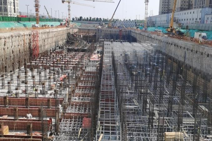施工中,項目部從制度管控和具體實操入手,早部署、早落實,始終做到“心中有全局,手中有物資”。該工程的施工重點是深基坑大體積施工,如遇強(qiáng)降雨天氣,基坑內(nèi)積水量大,無法自行排出。項目部根據(jù)深基坑施工現(xiàn)狀,為各施工隊伍配備排水泵,確保在24小時內(nèi)將積水排出基坑外, 并加快深基坑底板混凝土澆筑,盡早硬化底板地面;基坑兩側(cè)用沙袋設(shè)置阻水帶,提前做好邊坡防護(hù),防止雨水對深基坑造成浸泡侵蝕。同時,項目部安排施工人員加大監(jiān)測頻率,如果發(fā)現(xiàn)數(shù)據(jù)異常,及時上報并組織專家論證,確保深基坑施工“萬無一失”。