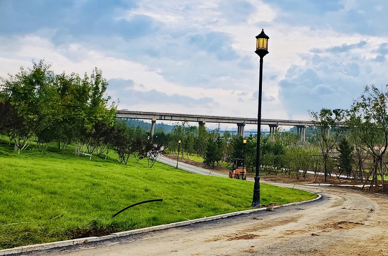 該工程屬于汾河四期治理美化工程的組成部分,要與園林、道路等同步施工,為呈現(xiàn)汾河美化整體效果,施工中時(shí)常出現(xiàn)設(shè)計(jì)變更情況,項(xiàng)目部結(jié)合施工實(shí)際,按照圖紙推進(jìn)施工。在三標(biāo)段施工中,設(shè)計(jì)要求將已做好燈基礎(chǔ)的草坪燈改為亮度更高、基礎(chǔ)更大的庭院燈,項(xiàng)目部組織施工人員在不破壞原有路燈基礎(chǔ)的情況下,再次擴(kuò)建開挖新的路燈基礎(chǔ),并在搭建更多模具的基礎(chǔ)上,通過澆筑混凝土保持其安全與穩(wěn)固。同時(shí),因部分路段要增加休息平臺(tái),項(xiàng)目部將已做好的管線破除,重新設(shè)置休息平臺(tái)的末端管線接頭,并嚴(yán)格按照設(shè)計(jì)規(guī)劃,改為繞平臺(tái)一圈后再做管線與基礎(chǔ),以確保汾河景觀的整體呈現(xiàn)效果。