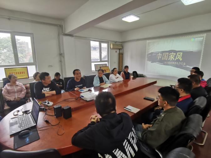 活動中,八公司黨支部書記陳建娥、租賃公司黨支部書記李曉劍分別分享了《清風傳家》讀本中樊錦詩與高德榮的家風故事,并組織大家觀看《中國家風---梁啟超和他的九個兒女》家風故事短片。