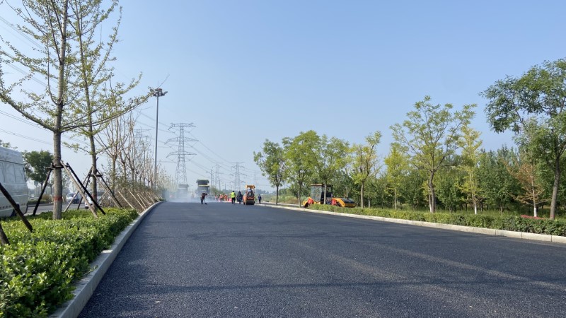 施工現(xiàn)場,兩臺攤鋪機、四臺壓路機、十多輛運料車正在緊張施工中……隨著一車車滾燙的瀝青被攤鋪到地面,冒著刺鼻的熱氣,大家來不及擦拭臉上的汗水,緊隨攤鋪機,用手里的摟耙不停地平整著粒料。攤鋪過程中,測量員嚴格把控高程,時刻監(jiān)測相關數(shù)據(jù),質檢員全程盯守,實時監(jiān)控鋪筑溫度和厚度,嚴把施工質量,施工員協(xié)調機械確保施工段連續(xù)鋪筑......9月11日至13日,在全體施工人員的共同努力下,一公司濱河東路南延二期工程施工一標段道路上面層瀝青混凝土全部鋪筑完畢。