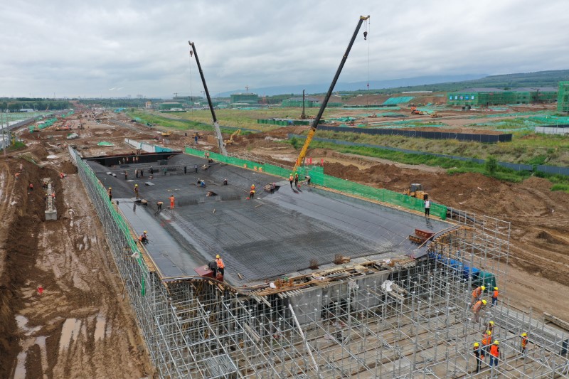 南內(nèi)環(huán)街東延建設(shè)工程起點(diǎn)為東中環(huán),終點(diǎn)至東山大道,全長(zhǎng)3.6公里,規(guī)劃紅線寬50米,建設(shè)內(nèi)容包括道路、橋涵、排水、電力等,于2021年7月開(kāi)工建設(shè),由四公司負(fù)責(zé)承建。在該工程下穿東山過(guò)境高速的通道施工中,全體參建人員將精細(xì)化施工貫穿全過(guò)程,針對(duì)此次修建下穿東山過(guò)境高速為四孔現(xiàn)澆混凝土箱涵的實(shí)際情況,項(xiàng)目部采用灰土擠密樁+1米厚的三七灰土墊層完全消除地基濕陷性,并及時(shí)進(jìn)行壓實(shí)度檢測(cè);編制了《模板支撐體系安全專項(xiàng)施工方案》并組織專家論證,通過(guò)采用盤扣式支架搭設(shè)架體,驗(yàn)收合格后進(jìn)行模板安裝、綁扎鋼筋、波紋管定位、穿束鋼絞線等各道工序,采用控制應(yīng)力和伸長(zhǎng)值進(jìn)行雙控,保證每一束鋼絞線在張拉過(guò)程中符合設(shè)計(jì)要求;施工人員規(guī)范操作、全程跟進(jìn),利用振搗棒進(jìn)行振搗,澆筑完成后采用覆蓋養(yǎng)護(hù),保證混凝土澆筑質(zhì)量。同時(shí),項(xiàng)目部主動(dòng)出擊、不等不靠,啟動(dòng)“5+2”“白加黑”連軸轉(zhuǎn)模式,利用工序交叉作業(yè),同步推進(jìn)施工進(jìn)度,在通道施工的同一工作面展開(kāi)搭設(shè)支架、混凝土澆筑等作業(yè),確保各工序按時(shí)間節(jié)點(diǎn)順利推進(jìn)。項(xiàng)目部對(duì)各道工序都嚴(yán)苛以待、精益求精,高標(biāo)準(zhǔn)完成施工任務(wù),以匠心筑精品,向太原市民交上一份完美的答卷。