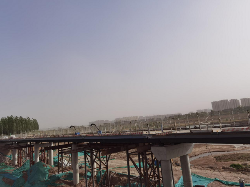 濱河?xùn)|路南延二期工程施工一標(biāo)段北起迎賓路,南至設(shè)計(jì)樁號(hào)K5+500,道路全長(zhǎng)約5.3公里,設(shè)計(jì)紅線寬為51.5-60米,施工內(nèi)容包括人行地下通道、排水、電力、下穿通道、高架橋、道路工程,于2021年12月開(kāi)工建設(shè),由一公司、三公司共同承建。該工程作為市重點(diǎn)項(xiàng)目,一公司強(qiáng)效組織、積極籌劃,確立“精心組織、精準(zhǔn)對(duì)標(biāo)、精細(xì)管理、精致施工”的理念,采取“分段管理”的施工方案,確立七個(gè)工區(qū),并安排專人負(fù)責(zé)各工段,形成全面開(kāi)花、相互協(xié)作的工作局面,大力提高施工效率。施工中,項(xiàng)目部錨定目標(biāo)節(jié)點(diǎn),制定施工計(jì)劃,冬季施工中認(rèn)真做好混凝土養(yǎng)護(hù)和保溫工作,有效防止混凝土凍裂;采用放坡和拉森鋼板樁+鋼支撐的支護(hù)方式,嚴(yán)格控制鋪筑厚度逐層回填夯實(shí),為施工奠定堅(jiān)實(shí)基礎(chǔ);合理調(diào)配110臺(tái)機(jī)械、854名施工人員24小時(shí)倒班不間斷作業(yè),最快一天連續(xù)鋪筑瀝青混凝土1800米,掀起“大干不停歇”的施工熱潮。2022年9月,一公司圓滿完成全部施工任務(wù),在全線七個(gè)標(biāo)段中名列前茅,為汾河?xùn)|岸再填一條平坦大道。三公司全體參建人員與時(shí)間賽跑,從各施工區(qū)域土方工程破土動(dòng)工,到墩柱、橋梁相繼“沖出”地平線,爭(zhēng)時(shí)間、搶進(jìn)度,是該工程第一個(gè)完成首聯(lián)箱梁澆筑的標(biāo)段。其中,橋梁工程是整個(gè)工程的重中之重,結(jié)合工程自身特點(diǎn),現(xiàn)澆箱梁采用滿堂紅盤扣式支架法進(jìn)行施工,大大提高了模板安裝精度和施工質(zhì)量,降低了模板、腳手架的安裝難度;項(xiàng)目部嚴(yán)格把控瀝青混凝土鋪設(shè)這最為關(guān)鍵的一步,攤鋪機(jī)勻速前進(jìn),刮平后立即檢查,及時(shí)進(jìn)行人工充分壓實(shí)。項(xiàng)目部肩負(fù)光榮使命,齊心協(xié)力戰(zhàn)疫情、斗風(fēng)沙、頂驕陽(yáng)、冒暴雨,及時(shí)排除項(xiàng)目建設(shè)過(guò)程中難點(diǎn)、堵點(diǎn)問(wèn)題,以腳踏實(shí)地的努力,保證了一個(gè)個(gè)節(jié)點(diǎn)目標(biāo)的如期完成,確保施工進(jìn)程“不歇步”,合力攻堅(jiān)、全速推進(jìn),用敬業(yè)和擔(dān)當(dāng)詮釋了實(shí)干精神,彰顯了市政人“闖”的精神,“創(chuàng)”的勁頭。
