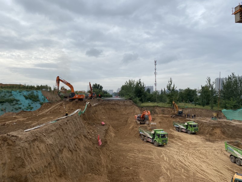 迎澤大街東延建設(shè)工程長(zhǎng)約1.25公里,寬70米,建設(shè)內(nèi)容包括道路、地道、擋墻、排水、電力等,于2021年5月開(kāi)工建設(shè),由八公司負(fù)責(zé)承建。根據(jù)現(xiàn)場(chǎng)施工條件,該工程全線形成多點(diǎn)開(kāi)花、分段作業(yè)的局面,多道工序在施工作業(yè)面同時(shí)展開(kāi)、互不影響,有效壓縮了工序間的銜接時(shí)間。施工期間,項(xiàng)目部主動(dòng)配合國(guó)家電網(wǎng)、鐵路等部門,加快推進(jìn)配電室改遷、10千伏水源線入地等作業(yè),確保工程順利進(jìn)行。施工中,項(xiàng)目部嚴(yán)控溝槽開(kāi)挖,結(jié)合溝槽開(kāi)挖較深且周期較長(zhǎng)的情況,采用放坡開(kāi)挖并打設(shè)鋼板樁的方式對(duì)土體進(jìn)行加固支護(hù),提升基坑整體穩(wěn)定性,保證成型質(zhì)量;強(qiáng)化溝槽回填,項(xiàng)目部采取管頂500毫米以下進(jìn)行人工回填,管頂500毫米以上利用機(jī)械分層進(jìn)行回填的方式,有效保證溝槽回填質(zhì)量達(dá)到施工要求。同時(shí),該工程臨近居民區(qū),項(xiàng)目部全力做好安全施工,在圍擋、標(biāo)識(shí)牌、警示標(biāo)語(yǔ)、防護(hù)設(shè)施、灑水降塵等方面處處把關(guān),嚴(yán)格要求,優(yōu)質(zhì)高效推進(jìn)工程建設(shè),全力打造安全文明標(biāo)準(zhǔn)化工地,并結(jié)合施工實(shí)際,修建臨時(shí)便道,解決下雨出行難的實(shí)際問(wèn)題,保證居民日常出行安全,得到了居民們的交口稱贊。全體參建人員擼起袖子、鼓足干勁,保質(zhì)保量完成各項(xiàng)施工任務(wù),作為“三晉第一街”的迎澤大街也以嶄新面貌出現(xiàn)在廣大市民面前,成為連接?xùn)|西兩山的一條通衢大道。