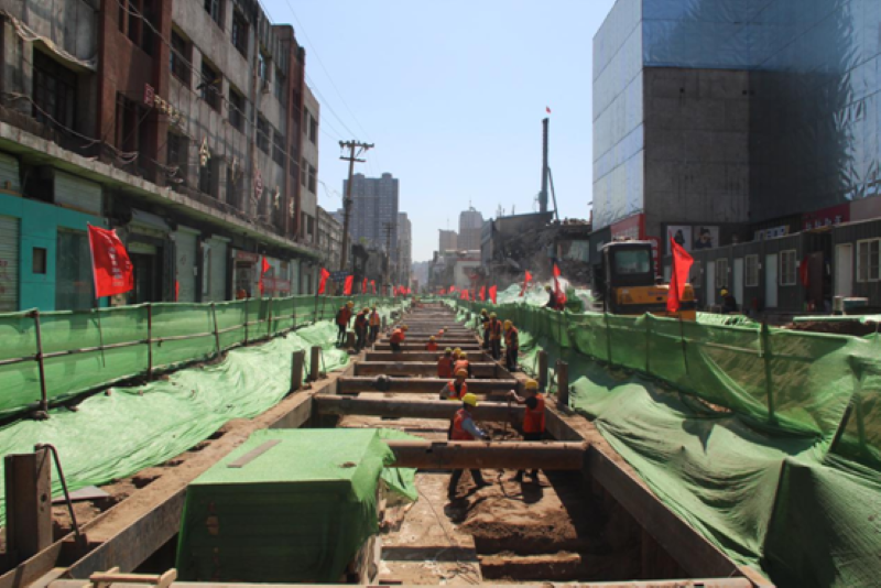 解放路改造工程施工二標(biāo)段北起東三道巷,南至迎澤大街,道路長(zhǎng)約2.8公里,由二公司負(fù)責(zé)承建。該工程涉及道橋建設(shè)、線纜入地、風(fēng)貌整飾、設(shè)施完善、歷史文化保護(hù)傳承等方方面面。因施工位于主城區(qū),施工環(huán)境復(fù)雜,涉及多家施工隊(duì)伍同時(shí)作業(yè),項(xiàng)目部多方聯(lián)系、加強(qiáng)管理,通過(guò)與地鐵、管線等施工方溝通,合理分配施工節(jié)點(diǎn),動(dòng)態(tài)管理各個(gè)環(huán)節(jié),利用短短一個(gè)半月時(shí)間順利完成了整體管線施工任務(wù),為后續(xù)施工打下堅(jiān)實(shí)基礎(chǔ)。管線施工中,項(xiàng)目部采取人工挖設(shè)探坑,明確管線具體位置,再通過(guò)打設(shè)鋼板樁+高壓旋噴樁的形式,加固兩側(cè)土體,確保開(kāi)挖作業(yè)順利進(jìn)行,同時(shí),項(xiàng)目部調(diào)整開(kāi)挖工作面長(zhǎng)度,因解放路管線眾多需在保護(hù)安全的前提下進(jìn)行施工,項(xiàng)目部一改以往數(shù)十米一個(gè)開(kāi)挖面的傳統(tǒng)方法,每間隔五米或十米開(kāi)挖一個(gè)工作面,確保管線的正常運(yùn)行,圓滿完成了施工任務(wù)。經(jīng)過(guò)6個(gè)多月的緊張施工,解放路改造工程如期竣工通車(chē)。該工程是太原市第一條集地面道路交通和地下軌道交通同步推進(jìn)的綜合性改造工程。全體施工人員弘揚(yáng)“市政”精神,展現(xiàn)“鐵軍”風(fēng)采,優(yōu)質(zhì)高效完成施工任務(wù),為全市人民交上了一份完美答卷,為再現(xiàn)“錦繡太原城”盛景貢獻(xiàn)了新時(shí)代市政力量。