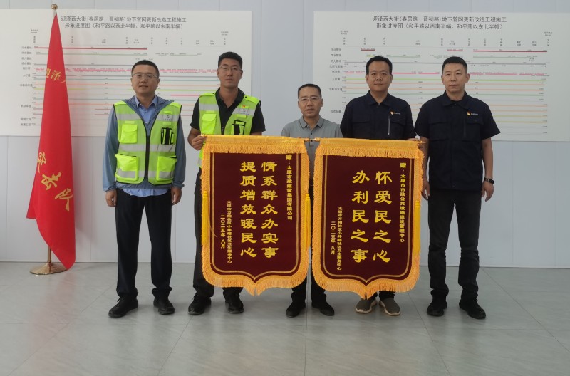 8月29日,太原市政集團(tuán)收到太原市萬柏林區(qū)小井峪社區(qū)衛(wèi)生服務(wù)中心送來的 “情系群眾辦實事 提質(zhì)增效暖民心”錦旗,感謝太原市政集團(tuán)在迎澤大街(西段)地下管網(wǎng)更新改造工程以過硬的工程質(zhì)量和高效的推進(jìn)速度,高標(biāo)準(zhǔn)開展施工任務(wù),極大改善附近居民的出行條件和生活環(huán)境。