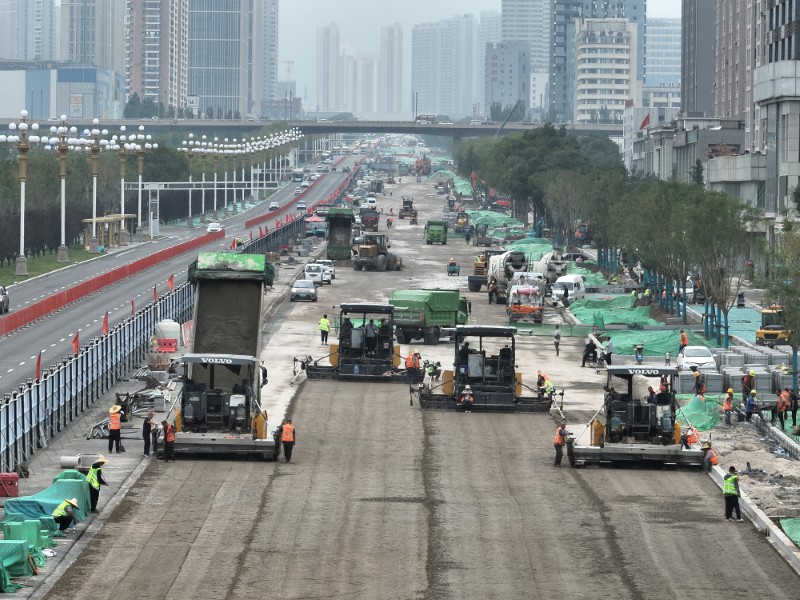 7月20日,地下管線全部完工;7月30日,完成道路基層施工;8月25日,人行道鋪裝結(jié)束;9月1日,瀝青上面層完成攤鋪……每一個工期節(jié)點的順利完成,既是參建人員攻堅克難的縮影,也是項目管理科學(xué)高效的符號。項目部將“工序銜接流暢度”作為施工核心抓手,通過“倒排工期+工序優(yōu)化”動態(tài)調(diào)整施工組織:各參建單位投入足量人員、材料與機械設(shè)備,一體化推進工程建設(shè),各工序有效銜接,各工區(qū)協(xié)同作戰(zhàn),組成攻堅“集團軍”;輔營單位高效配合、合作緊密,制定“分期分段”“一進一退”施工策略,實施平行流水作業(yè),交叉推進工序進展,當(dāng)好輔助“策應(yīng)團”;物料供應(yīng)單位加班加點、精準備料,保證物料及時送達,確保供料全部達標,擔(dān)當(dāng)施工“保障隊”。同時,作為施工牽頭單位,太原市政集團以“時間共享機制”為紐帶,統(tǒng)籌協(xié)調(diào)園林、供熱、綠化等多家參建單位錯峰作業(yè),合理規(guī)劃施工場地、協(xié)商確定交叉作業(yè)節(jié)點,讓各參建方從“單打獨斗”變?yōu)椤奥?lián)合作戰(zhàn)”,推動項目建設(shè)跑出“加速度”。