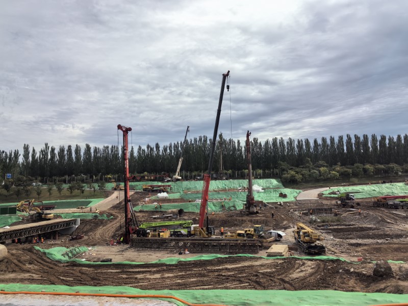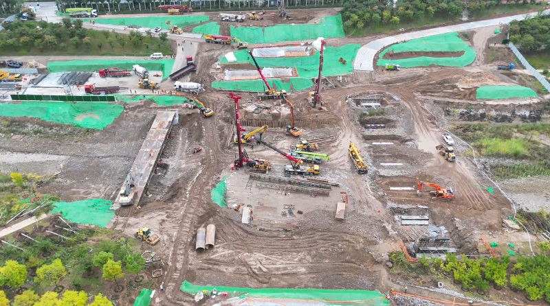 幸福橋設(shè)計(jì)為一座跨汾河大橋。項(xiàng)目部根據(jù)工程特點(diǎn),將工程劃分為東西兩個(gè)工區(qū),分解關(guān)鍵節(jié)點(diǎn)工期目標(biāo),拆分成一般節(jié)點(diǎn)工期,再細(xì)化為每周、每日的進(jìn)度計(jì)劃,層層細(xì)化,層層落實(shí)。同時(shí),項(xiàng)目部安排道排、橋梁等專(zhuān)業(yè)施工隊(duì),通過(guò)組織流水施工作業(yè),減少交叉作業(yè)影響,保證各工作面既滿(mǎn)負(fù)荷工作,又不互相干擾,加快施工進(jìn)度。由于該工程施工范圍位于汾河兩岸,地質(zhì)情況比較復(fù)雜,地下水位高,地下土質(zhì)為卵石,開(kāi)挖難度較大,施工人員先利用螺旋鉆機(jī)進(jìn)行引孔,再采用“止水鋼板樁+拉森樁”的方式,起到有效防水和支護(hù)的效果。在進(jìn)行橋梁基礎(chǔ)施工時(shí),項(xiàng)目部采用正循環(huán)鉆孔灌注樁的施工工藝進(jìn)行施工作業(yè),正循環(huán)鉆孔通過(guò)水泵壓送泥漿,從鉆桿柱中心進(jìn)入孔底并返出,能夠快速完成鉆孔作業(yè),操作方式簡(jiǎn)便,降低了施工難度?,進(jìn)一步加快施工進(jìn)度。針對(duì)工程重點(diǎn)難點(diǎn),項(xiàng)目部還專(zhuān)門(mén)制定了《深基坑安全專(zhuān)項(xiàng)施工方案》和《高大模板支撐體系安全專(zhuān)項(xiàng)施工方案》,邀請(qǐng)專(zhuān)家進(jìn)行論證,確保重點(diǎn)環(huán)節(jié)的施工質(zhì)量。