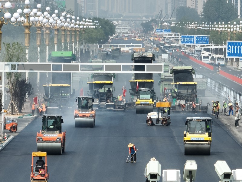 面對(duì)全長(zhǎng)4.3公里的施工戰(zhàn)線,租賃公司和路面公司展現(xiàn)了高度的專業(yè)協(xié)作與責(zé)任擔(dān)當(dāng)。租賃公司科學(xué)調(diào)度大量大型機(jī)械設(shè)備,包括銑刨機(jī)、壓路機(jī)和攤鋪機(jī)等,按照施工計(jì)劃分批次進(jìn)場(chǎng),確保了“分段流水、平行作業(yè)”模式的高效運(yùn)轉(zhuǎn)。通過精準(zhǔn)匹配機(jī)械供應(yīng)與作業(yè)面規(guī)劃,他們?yōu)楣こ烫峁┝藞?jiān)實(shí)的設(shè)備保障,同時(shí)嚴(yán)格執(zhí)行機(jī)械操作安全規(guī)程,有效管控高風(fēng)險(xiǎn)作業(yè)環(huán)節(jié)。在機(jī)械設(shè)備充足的同時(shí),路面公司聚焦道路施工的質(zhì)量與精細(xì)化管理。在完成地下管網(wǎng)改造工程后,他們迅速推進(jìn)路面工程施工進(jìn)度,實(shí)施水穩(wěn)、瀝青鋪筑工作。面對(duì)高溫和雨季的持續(xù)挑戰(zhàn),路面公司施工人員堅(jiān)守一線,嚴(yán)格把控每道工藝,以精益求精的施工質(zhì)量和爭(zhēng)分奪秒的施工速度圓滿完成施工任務(wù),完成全線水穩(wěn)和瀝青的攤鋪工作。租賃公司和路面公司通過與施工單位的緊密配合,展現(xiàn)了同心協(xié)力、協(xié)同作戰(zhàn)的施工風(fēng)采,助力迎澤大街(西段)煥新升級(jí),彰顯了太原市政集團(tuán)的專業(yè)水準(zhǔn)與責(zé)任使命。
