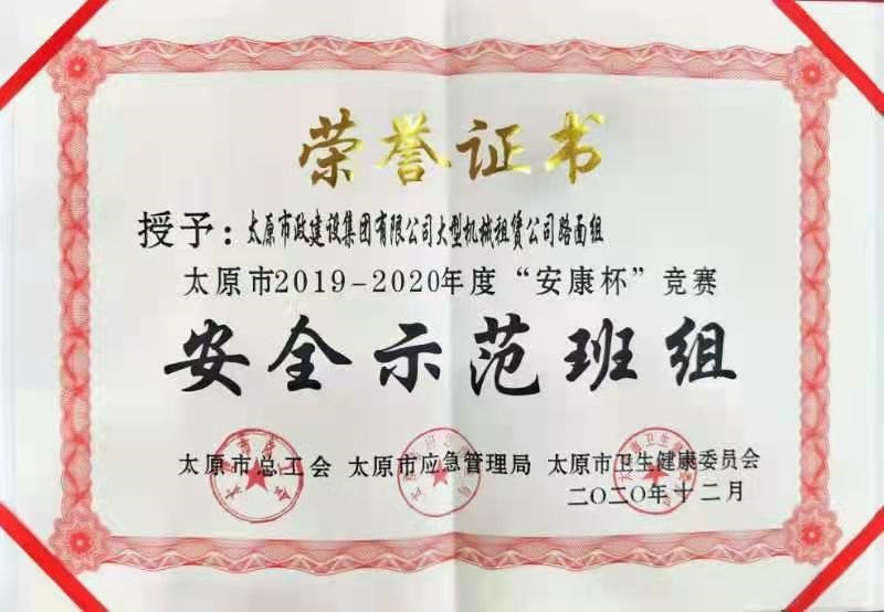 4月8日,租賃公司路面組榮獲太原市2019—2020年度“安康杯”競(jìng)賽安全示范班組榮譽(yù)稱號(hào)。