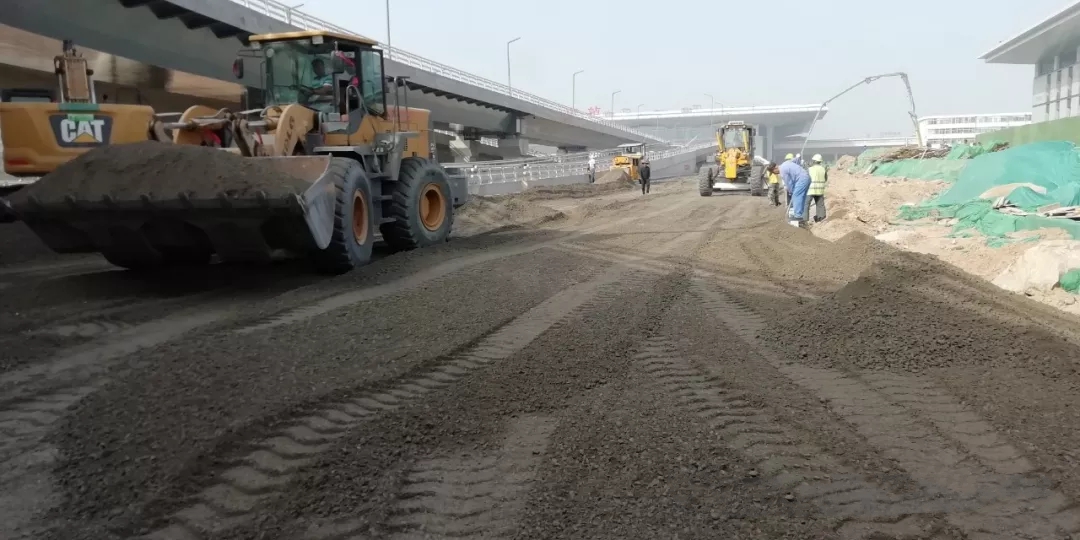 太原市政建設集團有限公司太原南站東廣場配套路網(wǎng)工程龍堡路、規(guī)劃一路、F1路、F2路等10條道路水穩(wěn)鋪設已全部完成