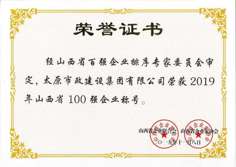 集團(tuán)公司榮獲“2019年山西省100強(qiáng)企業(yè)”稱號(hào),排名第39位。集團(tuán)公司將持續(xù)深入踐行“以質(zhì)量求生存、靠誠信促發(fā)展”的經(jīng)營理念,增強(qiáng)發(fā)展信心,化挑戰(zhàn)為機(jī)遇,在爭創(chuàng)一流企業(yè)的道路上不斷取得新的成就,為實(shí)現(xiàn)我省經(jīng)濟(jì)持續(xù)健康發(fā)展和全面建成小康社會(huì)做出新的貢獻(xiàn)。