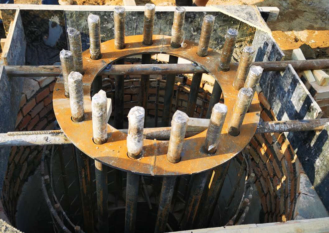 十三項(xiàng)目部承建的桃園四巷片區(qū)道路改造工程地處老城區(qū),地下水位高,基礎(chǔ)埋深較深,土質(zhì)為淤泥質(zhì)軟土,且道路兩側(cè)分布高壓電桿。施工中,項(xiàng)目部不斷創(chuàng)新施工工藝,改進(jìn)施工技術(shù),為工程的順利完工奠定了堅(jiān)實(shí)的基礎(chǔ)。為配合市政府進(jìn)行無纜化社區(qū)改造施工,需在新建路桃園四巷路口打設(shè)一處電纜鋼桿基礎(chǔ),該鋼桿基礎(chǔ)為直徑1.8米,埋深5.7米的鋼筋混凝土結(jié)構(gòu)。由于緊鄰高壓電桿,無法采用常見的基坑施工方法,經(jīng)過技術(shù)人員討論分析,項(xiàng)目部決定采用沉管工藝進(jìn)行施工。施工中,需在基礎(chǔ)位置挖設(shè)外徑2.5米、深度1米的基坑內(nèi)垂直放置內(nèi)徑1.5米,長(zhǎng)度2.5米的企口混凝土管,項(xiàng)目部采用機(jī)械配合人工挖土的方式進(jìn)行管道下沉施工。為加快施工進(jìn)度,施工人員采用三班交替24小時(shí)不間斷施工的方法,經(jīng)過3天4夜的日夜奮戰(zhàn),順利將2根2.5米長(zhǎng)的預(yù)制混凝土管沉入指定深度。隨后,通過安插片石穩(wěn)定管基,澆筑混凝土進(jìn)行沉管封底,待基坑底部混凝土達(dá)到規(guī)定強(qiáng)度后,按設(shè)計(jì)高程吊裝并固定鋼筋籠,最終圓滿完成了鋼桿基礎(chǔ)的施工任務(wù),為工程質(zhì)量和施工安全提供了有效保障。