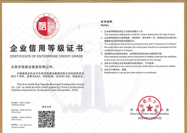 2020年12月24日,集團(tuán)公司順利通過(guò)中國(guó)建筑業(yè)協(xié)會(huì)信用企業(yè)AAA級(jí)復(fù)評(píng),證書有效期延至2023年12月23日。