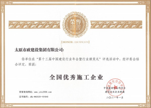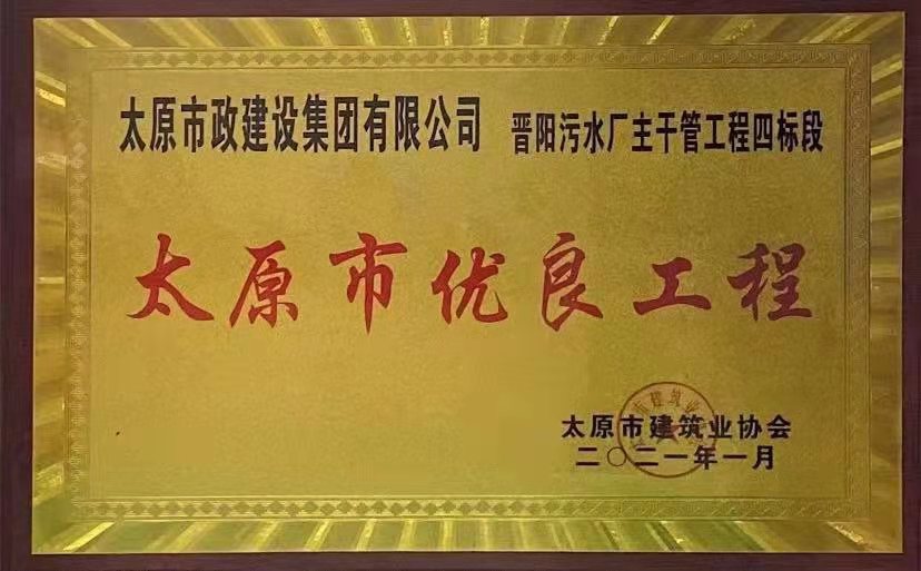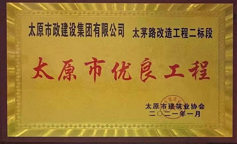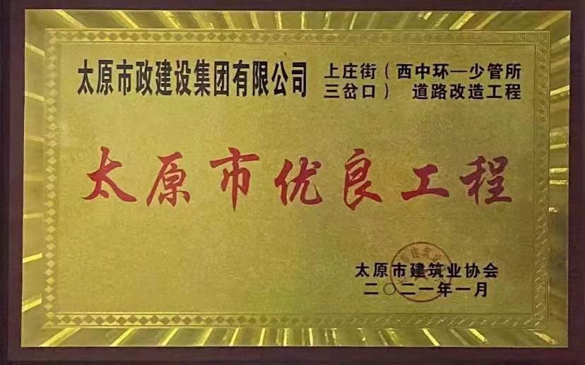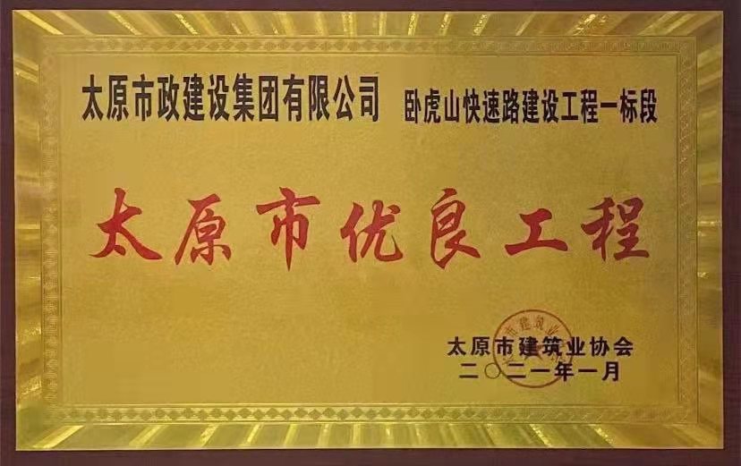 2021年1月13日,集團(tuán)公司承建的晉陽(yáng)污水廠主干管工程四標(biāo)段、太茅路改造工程二標(biāo)段、臥虎山快速路建設(shè)工程一標(biāo)段、上莊街(西中環(huán)——少管所三岔口)道路改造工程被太原市建筑業(yè)協(xié)會(huì)評(píng)為2020年“太原市優(yōu)良工程”,工程項(xiàng)目經(jīng)理郝東輝、高鴻、李瑞金被評(píng)為“2020年度太原市工程建設(shè)優(yōu)秀項(xiàng)目經(jīng)理”。