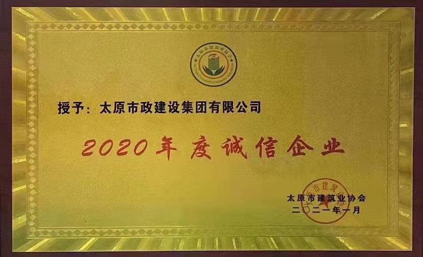 2021年1月26日,集團(tuán)公司被太原市建筑業(yè)協(xié)會(huì)評(píng)選為“2020年度誠(chéng)信企業(yè)”。