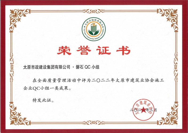 2022年太原市建筑業(yè)協(xié)會(huì)施工企業(yè)QC小組二類成果_磐石QC小組